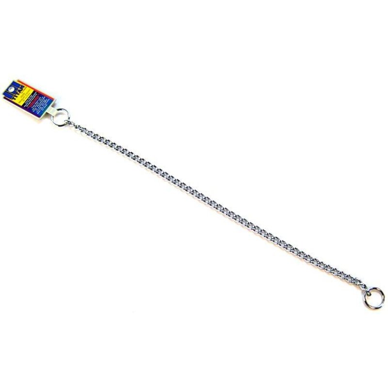 This choke chain is a high-quality, argon-welded and chrome plated chain for maximum strength and durability. This choke chain will not tarnish, rust or break.